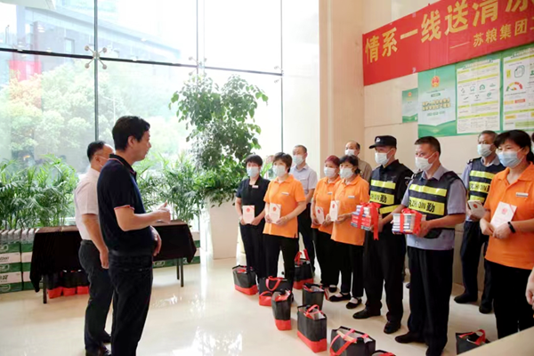徐兴起副书记代表bat365官网登录入口党委,对高温下坚守岗位的物业公司一线广大职工表示了诚挚的慰问,并为大家赠送了防暑降温用品和安全生产法规等相关书籍。他充分肯定了一线职工的工作成绩,感谢他们为大厦后勤保障和疫情防控作出的积极贡献,提醒大家在做好疫情防控工作、保证安全生产的基础上,要切实做好自身的防暑降温工作,保持良好的工作状态,再接再厉做出更好的成绩。